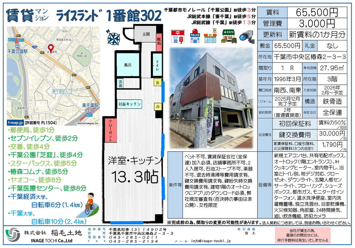 千葉市中央区椿森2-3-3 ライスランド1番館302号室